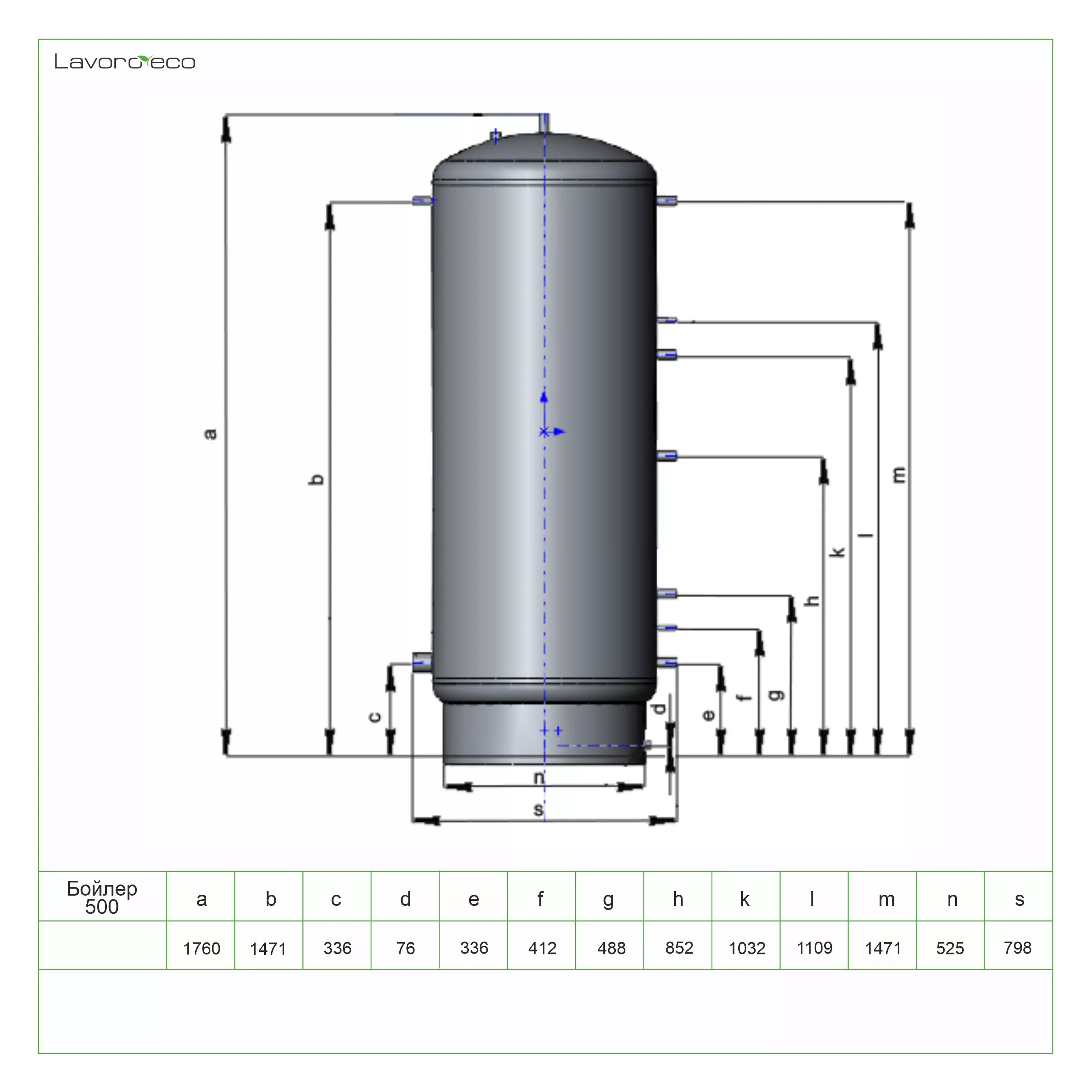 В пиролизном котле «Lavoro eco» не происходит прямого сгорания топлива, поэтому топка имеет небольшие размеры, что в итоге сказывается на размерах самого котла - они значительно меньше обычных твердотопливных.