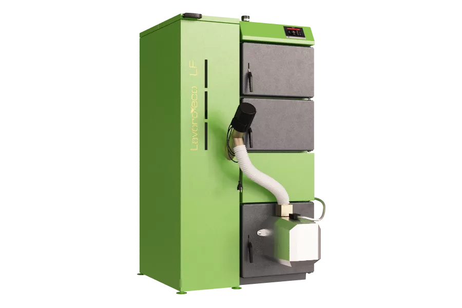 Пеллетный котел Lavoro ECO серии LF «Compact» — серия пеллетных котлов, разработанных специально для котельных, имеющих небольшие габариты. Основные преимущества данной серии котлов: вместительный, компактный бункер для пеллет, который можно установить с любой стороны от котла. В котел встроена современная факельная пеллетная горелка. В качестве топлива используются пеллеты (дрова - резервное топливо), котел оснащен бункером со шнеком.