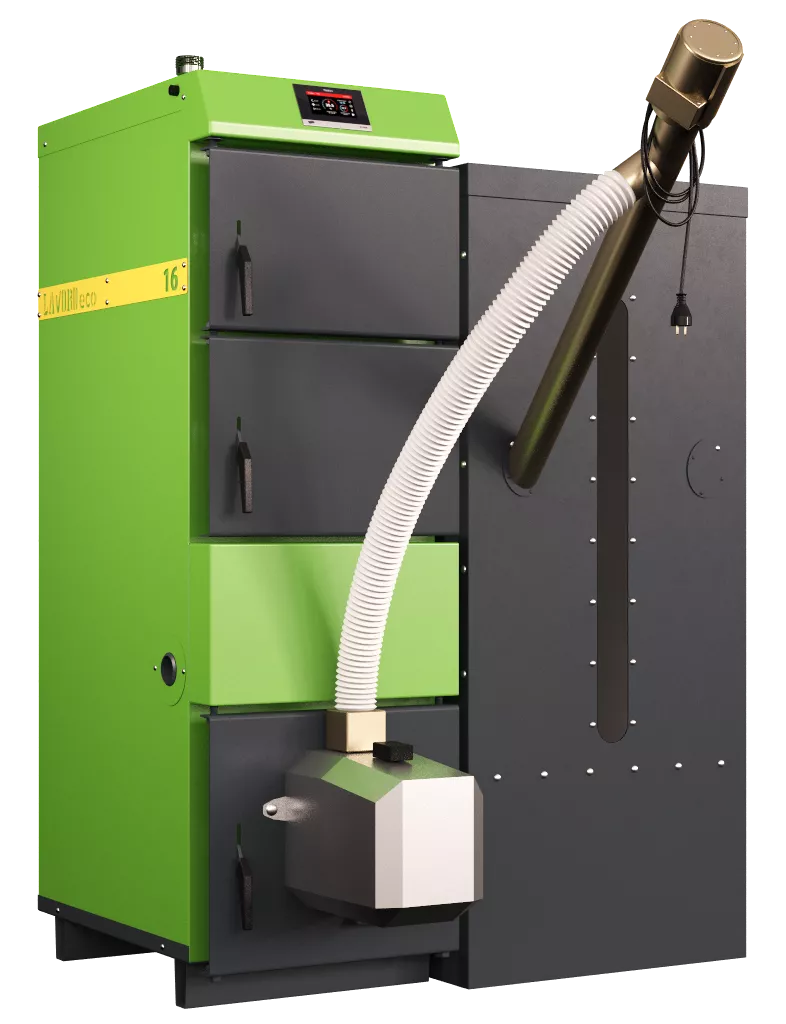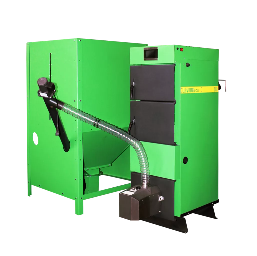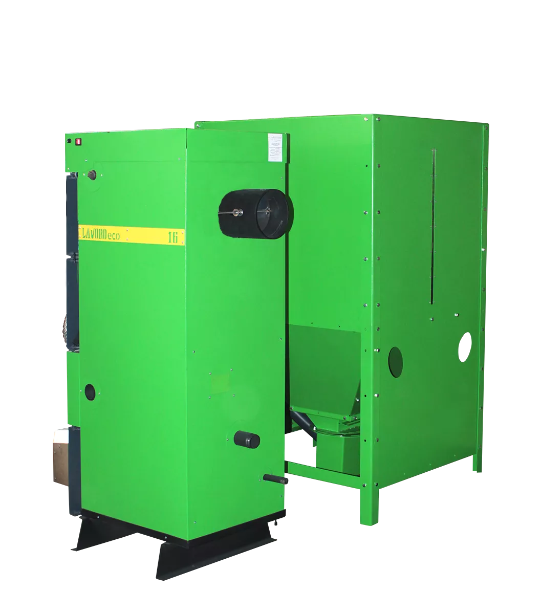 Пеллетный котел Lavoro ECO серии LF - это современный стальной водогрейный котел, работающий в полностью автоматическом режиме, предназначенный для отопления жилых и производственных помещений, а также для обеспечения горячей водой (ГВС). В котел встроена современная факельная горелка из специальной нержавеющей стали толщиной от 5 мм. В качестве топлива используются пеллеты (за исключением пеллет из отходов мебельного производства), котел оснащен бункером для их загрузки и шнеком для их подачи в горелку; как резервное топливо можно использовать дрова (требуется колосниковая решетка - доп.опция). Управление производится при помощи автоматики, также возможно дистанционное управление котлом (доп. опция). Горелка по умолчанию оснащена механизмами автоочистки и авторозжига.