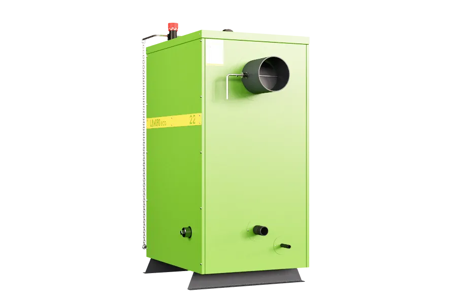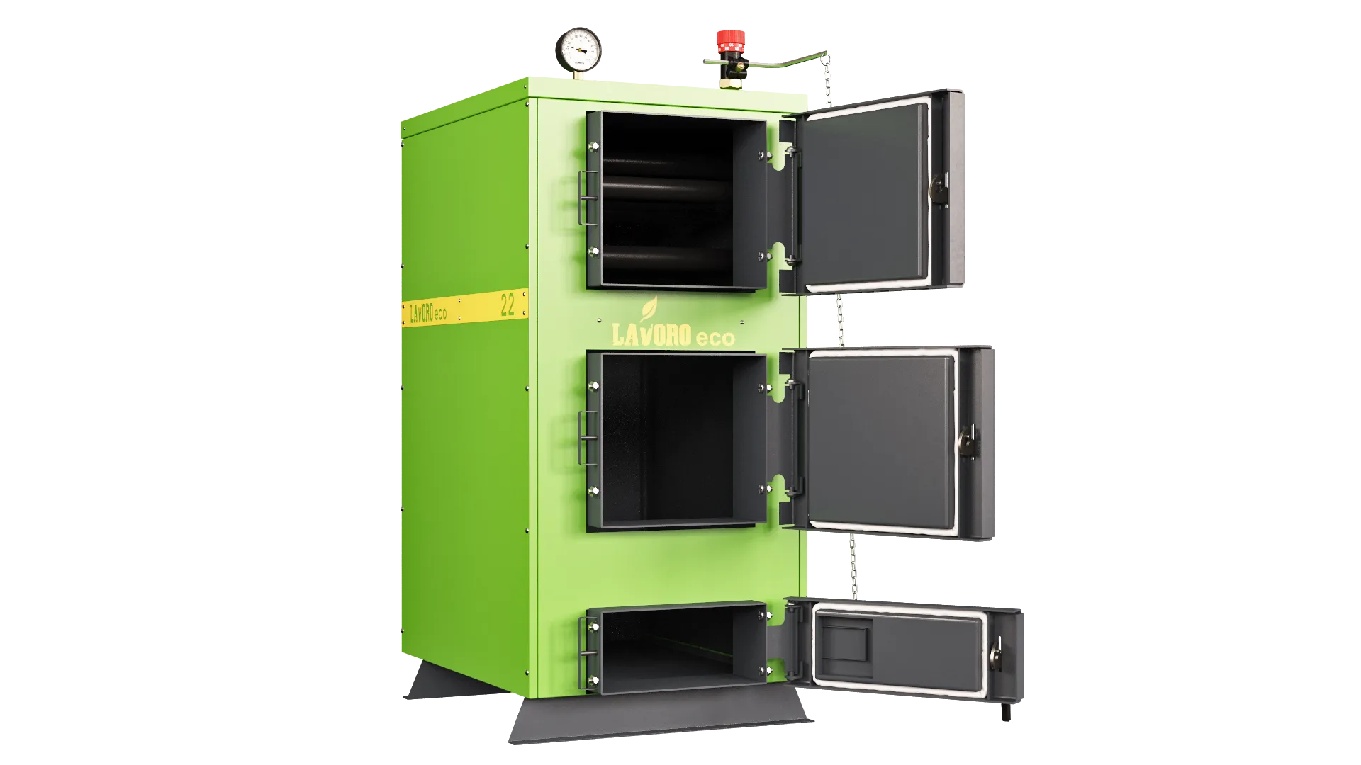 Котел Lavoro ECO серии K - это стальной водогрейный котел c дожигом пиролизного газа, предназначен для отопления помещений, оборудованных системами водяного отопления с естественной или принудительной циркуляцией, и горячего водоснабжения (ГВС). Основным видом топлива данных котлов являются дрова и различные виды топливных брикетов, резервный вид топлива уголь. Сталь топки 09Г2С, толщиной от 5 мм.