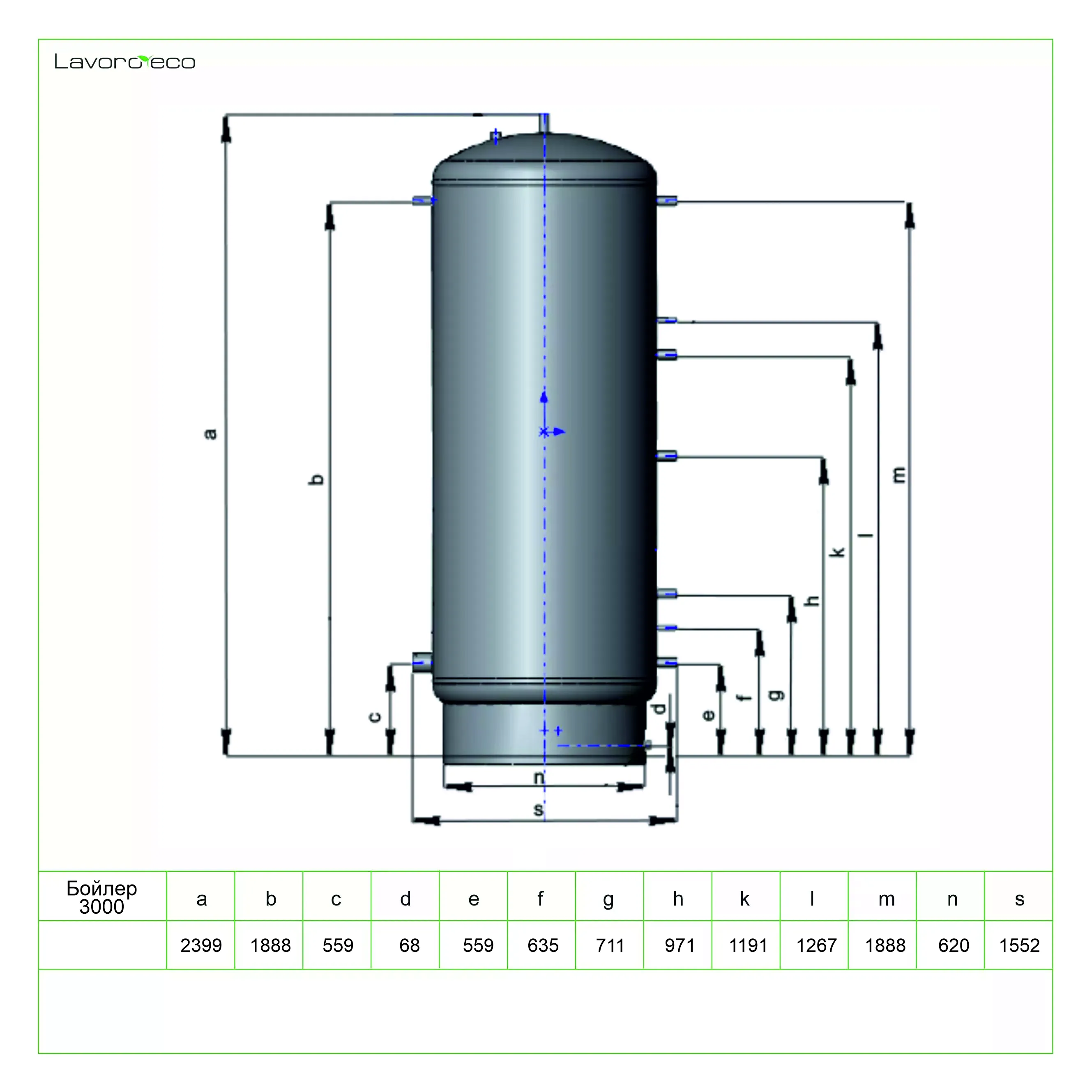 В пиролизном котле «Lavoro eco» не происходит прямого сгорания топлива, поэтому топка имеет небольшие размеры, что в итоге сказывается на размерах самого котла - они значительно меньше обычных твердотопливных.