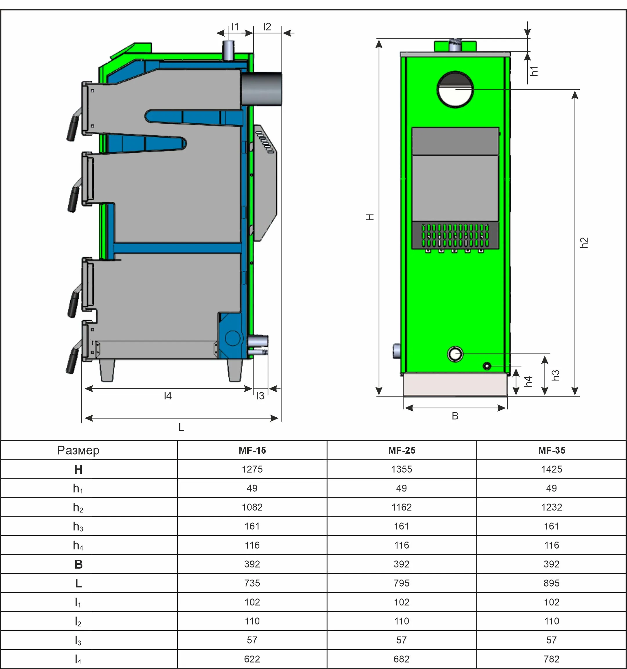 | Проем топочной дверцы - Высота | 190 |