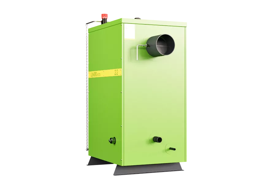 В пиролизном котле «Lavoro eco» не происходит прямого сгорания топлива, поэтому топка имеет небольшие размеры, что в итоге сказывается на размерах самого котла - они значительно меньше обычных твердотопливных.