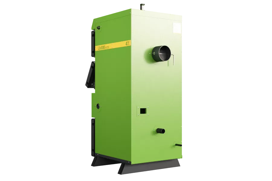 В пиролизном котле «Lavoro eco» не происходит прямого сгорания топлива, поэтому топка имеет небольшие размеры, что в итоге сказывается на размерах самого котла - они значительно меньше обычных твердотопливных.