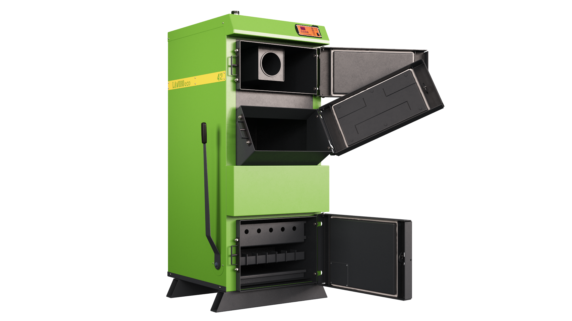 Котел Lavoro Carbone серии LC - это современный стальной водогрейный котел, работающий в полуавтоматическом режиме, предназначен для отопления жилых и производственных помещений, а также для приготовления горячей воды (ГВС). В качестве топлива используется уголь, древесина, различные виды топливных брикетов. Возможна комплектация пеллетной факельной горелкой. Основным отличием угольных котлов данной серии является возможность использовать в качестве основного топлива уголь; водонаполенные колосники из цельнотянутый жаропрочной толстостенной трубы; ворошилка уникальной и безотказной конструкции, которая помогает пользователю очищать поверхность колосников от шлака.